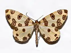 Wingspan of Pantherodes colubraria can reach about 50–55 millimetres (2.0–2.2 in). These moths have translucent yellow wings with leopard-like blotches.