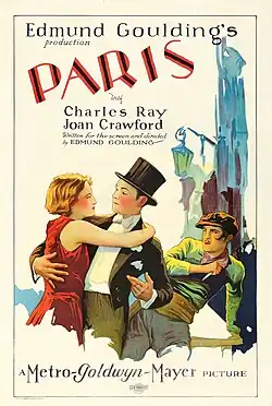 Paris is a 1926 American silent romantic drama film written and directed by Edmund Goulding. The film stars Charles Ray, Douglas Gilmore, and Joan Crawford.[1][2][3]