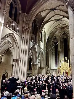 In recent years, the Paris Choral Society has performed Roth's Earthrise and Dove's Who Killed Cock Robin? (March 2025), Handel's Messiah (December 2024), Rutti's Requiem (French premiere, March 2024), Mendelssohn's Elijah and Dett's The Chariot Jubilee (December 2023), Rossini's Petite messe solennelle (June 2023, 2011), Verdi's Requiem (March 2023), Rütti's Three Carols and Britten's A Ceremony of Carols (December 2022), Mendelssohn's Lobgesang and Sandström's Te Deum (June 2022), Whitacre's Sainte-Chapelle (Recorded performance in Sainte-Chapelle), Dvořák's Stabat Mater (March 2022), Orff's Carmina Burana (June 2017), Mozart's Great Mass in C Minor (2016), Handel's Dixit Dominus and Coronation Anthems (November 2015), Beethoven's Missa Solemnis in the Church of Saint-Eustache[4] (March 2015), Fauré's Requiem and Bernstein's Chichester Psalms (November 2014), Rachmaninoff's Vespers[5] (March 2017), Bach's B Minor Mass (April 2014), Brahms A German Requiem, Haydn's The Creation (2013), Mozart's Requiem (2011, 2018), Bach's St. John Passion (2012), Morten Lauridsen's Lux Aeterna (2011).