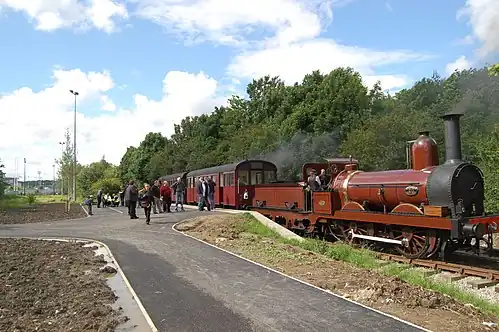 Park Halt railway station on the Middleton Railway in Leeds, West Yorkshire, England is the terminal station of the railway. It is situated next to Middleton Park. The halt was constructed so passengers could alight to walk around the reclaimed colliery site of Broom Pit and allow for the run-round of trains. Park Halt is located near the John Charles Centre for Sport. The site consists of a platform with pedestrian access into the park.