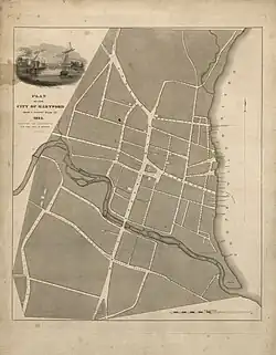 Before European settlement, several indigenous Algonquian peoples, including the Wangunk or Wongunk, Saukiog or Suckiaug, Podunk, and Tunxis peoples lived on the fertile banks of the Connecticut and Park rivers.[4] In 1633, fur traders from the Dutch West India Company set up Fort Goede Hoop at the Park and Connecticut rivers' confluence. The Dutch referred to the Connecticut River as the "Great River", and called its tributary, the Park, the "Little River".[5]