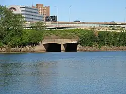 The Park River is a tributary of the Connecticut River in Hartford, Connecticut. It was officially named the Park River in 1892 after Bushnell Park, through which it flowed in downtown Hartford. A local newspaper had advocated for that name rather than the “’Hog River’” name which was then in use.[1][2] Between 1940 and the 1980s, the 2.3-mile (3.7 km) river was buried by the Army Corps of Engineers to prevent the spring floods regularly caused by increased surface runoff from urban development.[3]