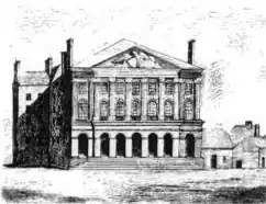 ![]() The theatre and surrounding neighborhood c. 1830. | |