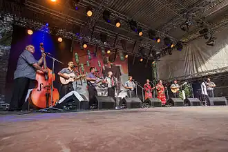 Parno Graszt is a Roma music ensemble from Paszab, Hungary founded in 1987. "Parno Grast" means "white horse" in the Romani language,[1] with "graszt" using the Hungarian orthography 'sz' for 's'. In the Roma culture white is a symbol of purity and horses are a symbol of freedom. Their debut album Hit the piano reached Number 7 on the World Music Chart Europe in October 2002.[2] In 2004 Hungarian Television and the BBC produced a music documentary about Parno Graszt.[3] After their second album, Járom az utam (2004), Parno Graszt was voted in the top 10 for "best artist of the year", 2005, by the Swiss music magazine Vibrations.[4] In 2016, they competed in A Dal, the national final selection for Hungary in the Eurovision Song Contest with the song Már nem szédülök, and reached the final.