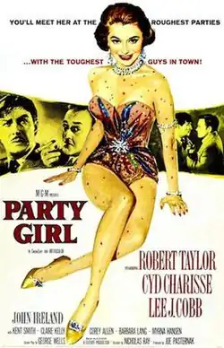Party Girl is a 1958 American film noir directed by Nicholas Ray and starring Robert Taylor, Cyd Charisse and Lee J. Cobb. Filmed in CinemaScope, it was the last film Charisse did for Metro-Goldwyn-Mayer, and the next-to-last film Taylor did for the studio; they were MGM's last two remaining major contract stars.[2][1]