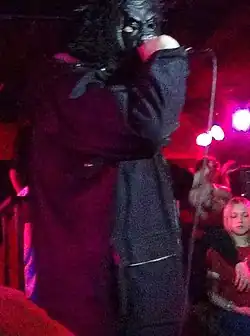 In 2002, along with rapper MC Smeshnoy, he created the rap group Kunteynir.[1] In 2003, Technique began to master the music writing software Fruity Loops.[12] Kunteynir's debut performance took place at the presentation of the group's album Smoke Curtain in the Moscow club Downtown on 29 April 2004, where the duo performed as a warm-up act and was received coldly by the audience.[10] It was at this event that Pasha Technique first went on stage wearing a gorilla mask, which became his stage appearance until the start of his solo career.[10]