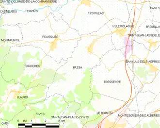 Passa is located in the canton of Les Aspres and in the arrondissement of Perpignan.