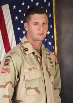 While in Baghdad as a JAG Corps attorney with the U.S. 82nd Airborne Division, Murphy worked to reconstruct the justice system and helped prosecute Sheik Mohammed Ali Hassan al-Moayad, a lieutenant of Muqtada al-Sadr.[15] Prior to being assigned to the 82nd, Murphy qualified as a Basic Parachutist and graduated the Air Assault course. He was awarded the Bronze Star Medal for meritorious service in Iraq.[16] Following his service in Iraq, he returned to Fort Bragg and continued his service as a JAG officer before being released from active duty in 2004.[14]