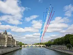During the France segment of the 2020 Summer Olympics closing ceremony, the Patrouille de France performed a flyby over Paris, passing the Eiffel Tower as Tokyo passed the Olympics on to the French capital for the 2024 Games.