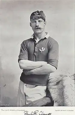 Clauss was born in Munich, but was educated at Loretto School[2] in Scotland. From Loretto he matriculated to Keble College, Oxford[3] and in 1899 he joined the Oxford University team. His most notable game with Oxford was played on 21 February 1889 against the New Zealand Native football team, Oxford winning 6–0.[4] He first faced Cambridge University in the 1899 Varsity Match. Clauss gained three sporting 'Blues' in total playing in the 1889, 1890 and 1891 matches. In the 1891 match, Clauss was Oxford captain, but adopted the wrong tactics to give Cambridge the game.[5] Despite excellent work form the Clauss and the rest of the Oxford three-quarters,[6] the forwards had exhausted themselves through too much tight scrimmaging in the first half of the match,[5] and the Cambridge team won by two tries to nil.