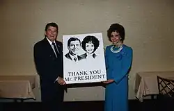 In a freak accident, a television studio partition toppled and struck her in early January 1982 during an interview at WESH-TV in Winter Park, Florida.[11][12] While not life-threatening, the mishap aggravated a back injury she suffered years before in an automobile collision and caused constant pain which plagued her during her years in Washington. Senator Strom Thurmond, in his capacity as President pro tempore, gave her the use of a room in the Capitol building for a hospital bed where she found pain relief under weighted traction during breaks between congressional activities.[13]