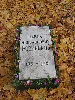 - ^ a b c d e f g h i j k l Иванова, Людмила. "Павел Аполлонович Ровинский". rovinsky.ru (in Russian). Retrieved 18 May 2021.