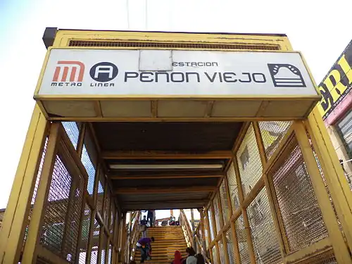 Peñon Viejo is a station along Line A of the Mexico City Metro.[2][3] It is located in the Colonia Santa Martha Acatitla Norte and Colonia Santa Martha Acatitla Sur neighborhoods of the Iztapalapa borough of Mexico City.[2]