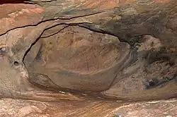 In general, there are two types of engravings, showing linear illustrations of bowls and cups, appear inside seven of the shelters. Only four of the shelters contain this one type of bowl and cup engravings while other categories of engravings appear alongside the paintings in other shelters. Bowl and cup engravings have also been discovered outside the shelters, on horizontal surface areas.