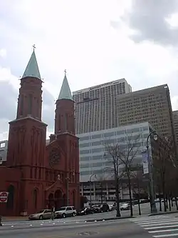 Peachtree Center is a district located in Downtown Atlanta, Georgia. Most of the structures that make up the district were designed by Atlanta architect John C. Portman Jr. A defining feature of the Peachtree Center is a network of enclosed pedestrian sky bridges suspended above the street-level, which have garnered criticism for discouraging pedestrian street life.[1] The district is served by the Peachtree Center MARTA station, providing access to rapid transit.