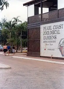 First opened in 1984 as the Pearl Coast Wildlife Park,[1] by 1988 the zoo had more than doubled in size.[7] It was one of a number of developments of McAlpine's in the town credited with transforming Broome from a "derelict"[5] place into "an international tourist destination".[8] The zoo ran into financial difficulties in the early 1990s, ostensibly due to falling visitor numbers,[2] and rebranded itself as the Wonderful World of Birds for a period.[3] McAlpine's attorney, however, revealed in late 1992 that the zoo had been running at a loss ever since it had opened.[3] The zoo closed at some point after December 1992, by which point most of the animals had already been sold.[9] At its peak, the zoo consisted of 75 acres, of which 35 acres were built upon.