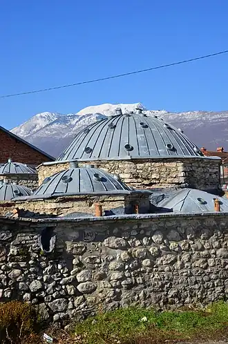 The town passed under Ottoman rule after its capture in 1455.[11] In Turkish, the town was known as İpek. The town became the center of the Sanjak of İpek, governed by the Albanian Mahmud Pasha Dukagjini as its first sanjakbey (local ruler).[12] The Sanjak of Dukagjin had four kazas: Peja, Gjakova, Gusinje and Berane.[13]