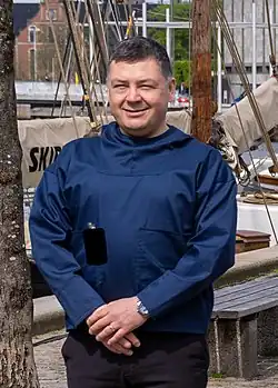 19 September 2021, the Danish newspaper Berlingske ran an interview with Broberg,[12] where he stated that the word "Rigsfællesskabet" (Danish: The unity of the Realm) should be abolished because it pretends that Greenland and the Faroe Islands are on an equal footing with Denmark, which according to Broberg is not the case as he believes that it is a Danish supremacy. Broberg prefers the term "det danske rige" (Danish: The Danish realm) instead.[13] He also stated that it should be discussed whether only Greenlanders with Inuit background should be able to vote in a possible upcoming referendum on Greenlandic independence.[14] Premier of Greenland Múte Bourup Egede distanced himself from his minister's statements in a press release, and the opposition parties Siumut and Demokraatit also opposed dividing the population into groups with different rights. The chairman of Demokraatit Jens-Frederik Nielsen thought that such policies were reminiscent of the former Soviet Union.[15] The support party Atassut also criticized Broberg and expressed their distrust of him as minister.[16] On 27 September, Múte Bourup Egede took over the foreign affairs and climate areas from Broberg.[17] He was later elected as Chairman of Naleraq on 25 June 2022 at an extraordinary congress, following the resignation of party founder Hans Enoksen.[18]