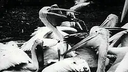 Pelicans at the Zoo is an 1898 British short black-and-white silent actuality film, produced by British Mutoscope & Biograph Company, featuring pelicans being released for feeding into their enclosure at London Zoological Gardens. The film was part of a series, with Elephants at the Zoo, which were one of the earliest examples of animal life on film.[1]