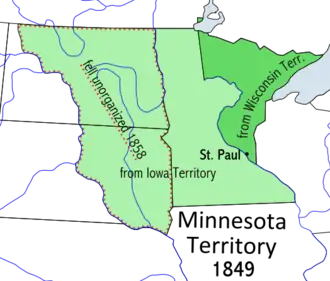 In 1834, the Pembina District became part of the Michigan Territory, and was subsequently assigned to Wisconsin and Iowa Territories. For a brief period after the admission of the States of Iowa (December 28, 1846) and Wisconsin (May 29, 1848), some or all of the region reverted to unorganized status. Establishment of Minnesota Territory on March 3, 1849 was followed by organization of Pembina County, encompassing the historic Pembina settlement.