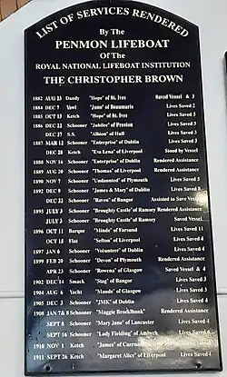 - ^ "Beaumaris' station history". Beaumaris Lifeboat Station. RNLI. Retrieved 9 May 2024.