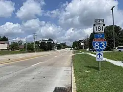 When Pennsylvania legislated routes in 1911, what is now PA 181 was the southern portion of Legislative Route 250, which ran between York and the Harrisburg area.[5] In 1928, the road between York and York Haven became a part of PA 24, a route which ran between the Maryland border and New Cumberland. The section of the route between York and York Haven was a paved road.[6] In the 1950s, US 111 Alt. was designated concurrent with PA 24 between York and the interchange with I-83/US 111 in North York.[7] In 1961, the northern terminus of PA 24 was cut back to east of York, and PA 181 replaced the PA 24 designation between PA 250 (now US 30) in North York and PA 382 in York Haven. In addition, I-83 Bus. replaced the US 111 Alt. designation concurrent with PA 181 south of the I-83 interchange. This change was made as part of the construction of I-83 in order to provide a numbered route at each interchange.[1] In 2003, PA 181 was widened into a divided highway between US 30 and I-83.[8]
