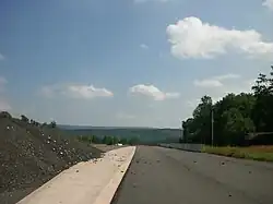 The Marshalls Creek Bypass was redesigned as a new project with a new park and ride at the Pocono Bazaar to the northeast of Marshalls Creek with an extended Oak Grove Drive, which would run around the back of the Bazaar and come to a new intersection with US 209 and a new bypass of the village of Marshalls Creek of US 209 only.[14] Construction on the park and ride began in 2009, marking the beginning of the third and final phase of the project.[15] Construction on the US 209 bypass was slated for Spring 2010, with a 2.5 year span of completion at the cost of $20 million (2009 USD).[16] The bypass opened on June 11, 2012, and PA 402's southern terminus became US 209 Bus. as US 209 was rerouted onto the new bypass.[17]
