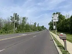 Pennsylvania Route 463 (PA 463) is a 12.9-mile-long (20.8 km) state highway completely in Montgomery County, Pennsylvania. Its western terminus is at PA 63 in Hatfield Township and its eastern terminus is at PA 611 in Horsham. PA 463 runs through the northern suburbs of Philadelphia and passes through the towns of Hatfield, Montgomeryville, and Horsham. The route intersects PA 309, U.S. Route 202 Business (US 202 Bus.), and US 202 in Montgomeryville and PA 152 in Prospectville. Through its length, the route carries the names Forty Foot Road, Broad Street, Main Street, Cowpath Road, and Horsham Road. PA 463 was designated in 1928 and fully paved by 1940. In 2010, a portion of the route in Montgomery Township was widened.