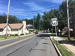 Pennsylvania Route 562 (PA 562) is a state highway in Berks County, Pennsylvania. The route runs 13.92 mi (22.40 km) from U.S. Route 422 Business (US 422 Bus.) in St. Lawrence east to PA 73 in Boyertown. PA 562 is a two-lane undivided road its entire length, passing through rural areas of eastern Berks County as it connects Boyertown to the Reading area. Along the way, PA 562 intersects PA 662 in the community of Yellow House. PA 562 was first designated by 1930 between Stonersville and PA 62 (later PA 100) southwest of Boyertown, running via Amityville and Yellow House. In the 1930s, the route was extended west to US 422 (now US 422 Bus.) in St. Lawrence and was realigned to its current alignment. PA 562 was extended east to PA 73 in 1964 after PA 100 was shifted to a new alignment to the east of Boyertown.