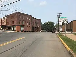 PA 624 begins at an intersection with PA 24 in the northern portion of the borough of Red Lion in York County. From the southern terminus, the route heads northeast on two-lane undivided East High Street, passing homes. PA 624 becomes the border between Windsor Township to the north and Red Lion to the south and the name changes to Craley Road as the road runs through wooded areas. The road fully enters Windsor Township and curves east before it enters the borough of Windsor. Here, the route becomes West Main Street and runs past homes along with a few businesses. Upon crossing Penn Street, PA 624 becomes East Main Street and passes through more developed areas. The route leaves Windsor for Windsor Township again and heads east-northeast as Craley Road, running through a mix of farmland and woodland with some homes. The road crosses into Lower Windsor Township and reaches the residential community of Bittersville, where it turns north before curving back to the northeast. PA 624 runs through wooded areas with some homes before heading into farmland, passing through the community of Martinsville. The route runs through more rural land before it comes to an intersection with the eastern terminus of PA 124 and the northern terminus of PA 425 in the community of Craley, where the road passes homes and businesses.[2][3]