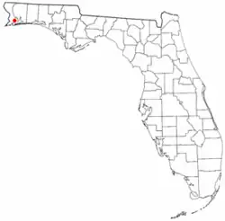 The bay, an inlet of the Gulf of Mexico, is located in Escambia County and Santa Rosa County, adjacent to the city of Pensacola, Florida, and is about 13 miles (21 km) long and 2.5 miles (4 km) wide. The Pensacola Bay estuarine system, which also includes Escambia Bay, Blackwater Bay, East Bay, Santa Rosa Sound, and the Escambia, Blackwater, Yellow, and East Bay rivers, is 144 square miles, and it is the fourth largest estuarine system in Florida.[1]