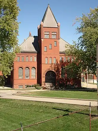 The three building site was constructed in 1890 after the publicly owned Peoria Water Company was sold to John T. Moffat and Henry C. Hodgskins. The building was designed in Romanesque Revival style and first supplied water to the city of Peoria on December 1, 1890.[2][3] The three structures, Pumping Station #1, Pumping Station #2 and the Main Well House, were included on the property's listing on the U.S. National Register of Historic Places on March 18, 1980.[1] The original property was located at NE Adams and Lorentz St.; now the address is 100 Lorentz Ave.[4] It is near the foot of Grandview Drive.[5]