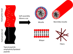 - ^ Löwik DW, van Hest JC (May 2004). "Peptide based amphiphiles". Chemical Society Reviews. 33 (4): 234–45. doi:10.1039/B212638A. hdl:2066/13849. PMID 15103405. S2CID 1517441.