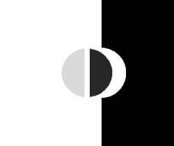 Although he was not the first author to study the phenomenon of transparency illusion, the Gestalt psychologist Metelli was probably the one who made the major contribution to the problem. Like his forecomers, Metelli faces the problem from a phenomenical more than from a physiological point of view. In other words, he did not investigate which are the physiological algorithms or the brain networks underlying transparency perception, but studied and classified the conditions under which a transparency illusion is generated. In doing so, Metelli marks an approach to the problem that will be followed by many scientists after him. The model is based on the idea that the perceptual colour scission following transparency is the opposite of colour fusion in a rotating episcotister, i.e. a rotating disk that alternates open and solid sectors. Metelli referred to colour fusion in a physical situation in which an episcotister rotates in front of an opaque background of reflectance A; the episcotister has an open sector of size t (a proportion of the total disk) and a solid sector of size (1-t) having reflectance r. The reflectance of the solid sectors and that of background are fused by rotation to produce a virtual reflectance value :