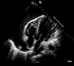 A 2D echo transthoracic echocardiogram of pericardial effusion. The "swinging" heart. | |