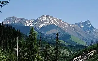 ![]() Peril Peak to left, from west. (Wolftail Mountain centered, Mount Doody to right) | |