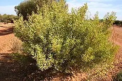 Persoonia, commonly known as geebungs[3] or snottygobbles,[4][5] is a genus of about one hundred species of flowering plants in the family Proteaceae. Plants in the genus Persoonia are shrubs or small trees usually with smooth bark, simple leaves and usually yellow flowers arranged along a raceme, each flower with a leaf or scale leaf at the base. The fruit is a drupe.