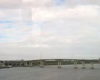 During the colonial period and for a significant time thereafter, Perth Amboy was an important way-station for travelers between New York City and Philadelphia, as it was the site of a ferry that crossed the Arthur Kill to Tottenville, Staten Island. The first ferry operated in 1684 and regular service began operating in 1709. This ferry became less important when the Outerbridge Crossing opened in 1928, but continued to operate until 1963.[46] In 1998, the Perth Amboy Ferry Slip was restored to its 1904 appearance.[47] A replica of the ticket office has been constructed and is used as a small museum.[39][48]