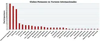 Universitario is the Peruvian club that more international cups disputed, with 46 participations, followed by Sporting Cristal (45), Alianza Lima (37), Melgar (13), Cienciano (11), Sport Huancayo (9), Juan Aurich (8), Sport Boys (8) and Universidad César Vallejo (7).