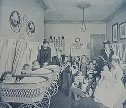 The institution was established in 1882 by Henriette Schrader-Breymann.[2] However, it was named after Friedrich Fröbel and another pedagogue, Johann Pestalozzi. Henriette Schrader-Breymann emphasized "learning by doing", the kindergarten value of play, using nature as a theme and normal domestic tasks.[3] The first Swedish kindergarten teachers were trained by Schrader-Breymann at the Pestalozzi-Fröbel Haus,[1] as was Mary Lyschinska.[4]