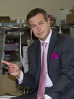 Peter David Jones CBE (born 18 March 1966) is an English entrepreneur, businessman, investor, and reality television personality, with interests in mobile phones, television, media, leisure, retail, publishing and property.[3] He is the last remaining original investor on the BBC One series Dragons' Den,[4] and has appeared on other television programmes with similar formats including Shark Tank in the United States.