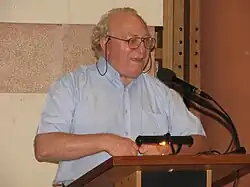 Serracino Inglott speaking at Researchers' Night 2007, at Saint James Cavalier, Malta | |