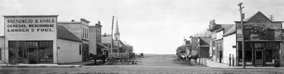 Petersburg was founded in 1884. Politician Martin N. Johnson and neighbor Levi H. Peterson owned land along the Great Northern Railway and decided to form a townsite. The two men flipped a coin to determine who got naming rights. Peterson won the coin flip, selecting the name Petersburg, presumably after himself.[5]