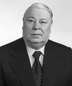 After the death of Antanas Sniečkus in 1974, Griškevičius succeeded him as the First Secretary of the Lithuanian Communist Party. He was also a delegate of the Supreme Soviet of the Lithuanian SSR (since 1965), delegate of the Supreme Soviet of the Soviet Union (since 1974), and member of the Central Committee of the Communist Party of the Soviet Union (since 1976).[1] Griškevičius was described as a Brezhnevite,[3] conservative and "mediocre apparatchik", who opposed perestroika and especially glasnost.[4] He wholeheartedly promoted the spread of Soviet patriotism as a means to combat nationalist dissidence.[5]