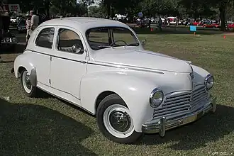 The 4-door saloon was the major seller, but from 1950 a commodious 4-door version (Commerciale) and a 6-seat (Familiale), with three rows of seats, were also offered on a wheelbase lengthened by 20 cm (7.9 in) to 278 cm (109.4 in).[3] By taking the trouble to extend the wheelbase for the estate and family versions, the company set a pattern which they would follow with several succeeding generations of large family Peugeot estates such as the 404 and 504.