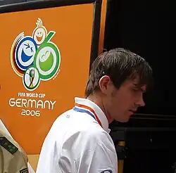 The Netherlands qualified for the 2006 World Cup, with Cocu scoring three times in the qualifying matches. Cocu was a first-team member in most games, but a sending-off against Andorra in September 2005[66] meant that Cocu missed the last two qualifiers.[58][67] At the World Cup, the Netherlands progressed from the group stage, but were knocked out by Portugal in the second round, with Cocu coming close to equalizing by hitting the crossbar shortly after the start of the second half.[58] After the tournament, Cocu retired from international football.[68] With 101 caps for the Netherlands, Cocu is currently ranked fifth in the list of most Dutch international appearances.[69] He was granted a farewell and a golden plaque for his services before the match against Belarus in September 2006.[70] In 2011, Cocu was named bondsridder of the Royal Dutch Football Association (KNVB), an honorary title for his service to Dutch football.[71]