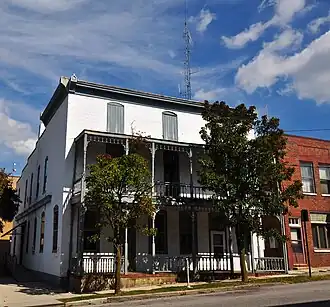 Phlegar Building is a historic office building located at Christiansburg, Montgomery County, Virginia. The original structure was built in the early 19th century, and extensively renovated after 1897. It is a three-story, rectangular brick building with Italianate style decorative details. It features a two-story porch of six bays with turned posts, a spindle frieze, brackets, and turned balusters.[3]