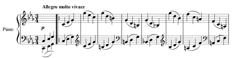 - Allegro molto e vivace in C minor is in a modified Scherzo form, trio section in A♭ major.