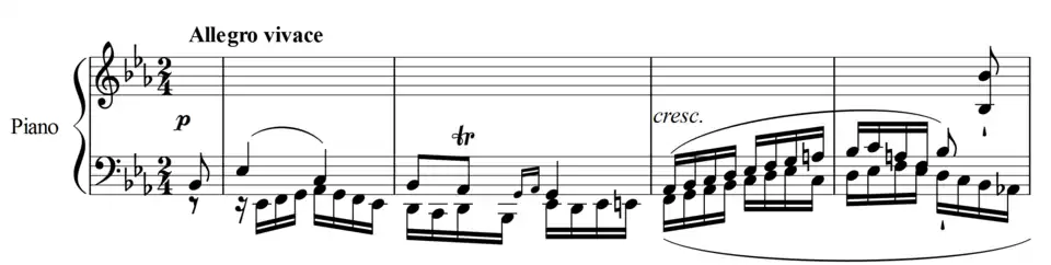 - Allegro vivace in E♭ major is in sonata rondo form (ABACABA)