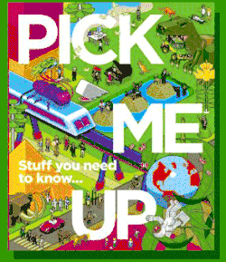 Pick Me Up is an encyclopedic non-fiction book primarily intended for children. As the cover states, it is a collection of "Stuff you need to know". Pick Me Up is arranged into eight categories. These are: Science, Technology and Space; Society, Places and Beliefs; History; The Natural World; People Who Made the World; Arts, Entertainment and Media; You and Your Body; and Planet Earth. Each category has 10–40 separate articles. Pick Me Up was created by David Roberts and Jeremy Leslie. The articles within Pick Me Up were written by more than 20 different writers.